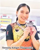 Nerosha felled 1,237 pins to bag the silver medal in the women’s singles of the Interstate Championships, finishing 77 pins behind the gold medalist and former national youth bowler Faten Najhah Ahmad Fakrul of Pahang.